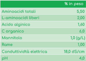 AgriAlgae® Premium Anti-Stress contiene tutti gli L-Aminoacidi Liberi. Contiene fitormoni, vitamine, minerali, pigmenti, peptidi, acidi grassi polinsaturi, polisaccaridi e rame. La sua composizione lo rende l’alleato perfetto nel supporto delle colture a fronte di possibili episodi di stress abiotico che possono pregiudicare la produzione ed il rendimento della coltivazione.