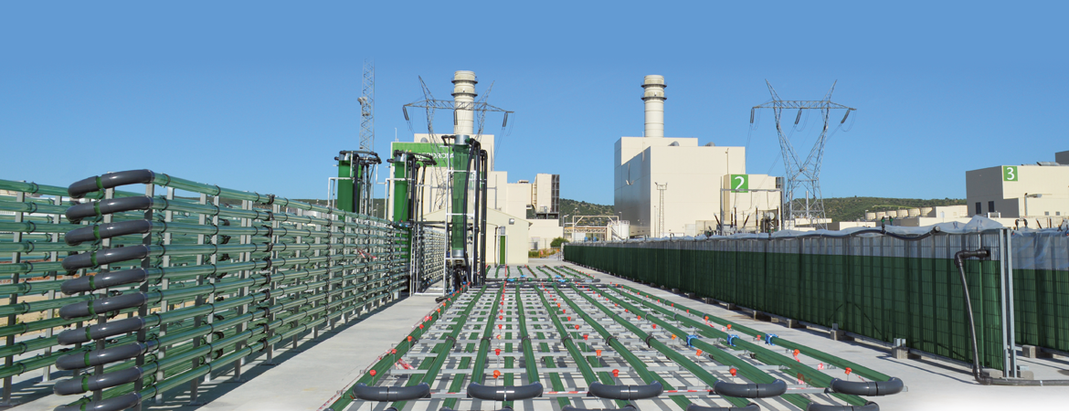 L’impianto è entrato in funzione nel 2014 ed è situato sul terreno della più grande Centrale a Ciclo Combinato della Spagna, proprietà di Iberdrola, leader mondiale nel campo delle energie rinnovabili e partner tecnologico di AlgaEnergy dal 2009. Il principale nutriente delle microalghe – la CO2 – viene presa direttamente dalla ciminiera come prodotto dei gas di combustione.